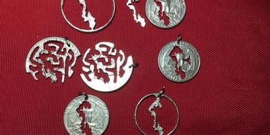 Designs of Whidbey Island and many other different designs hand-cut into each coin.