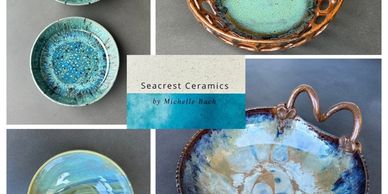 As the Artist and Owner of Seacrest Ceramics, I make unique pottery pieces that can be used and shared. Ceramics is the ultimate connection for me; to self, to others, and to the earth. With my hands in clay I am creating pieces that will be used by and shared between people. Passing a bowl around the table, we are encouraged to connect while sharing our space, our thoughts, our food.