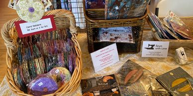 "Sewn With Love" was created this year by Patricia Woodland, and Jeni Hofer. It's a small, in home, business consisting of two gals who love to sew, love to buy fabric, and enjoy Arts & Crafts shows. Our goal is to have fun. With 80+ years of experience at sewing between us (with heavy emphasis on quilting), we decided to focus our skills on "fun" crafts. Our main feature item is a lady's wallet that is not only beautiful, but it has room for everything, including your cell phone. Being avid Pinochle players we've created a card holder for playing card games. These are helpful to those with arthritic fingers, and also, for young children. We've also brought bowl cozies into our mix. These are pretty and very handy for handling those HOT bowls of soup in the winter. We have other items like pot holders, coasters, shopping bags, and various sizes of zip bags... just for fun. Everything at our booth is "sewn with love".